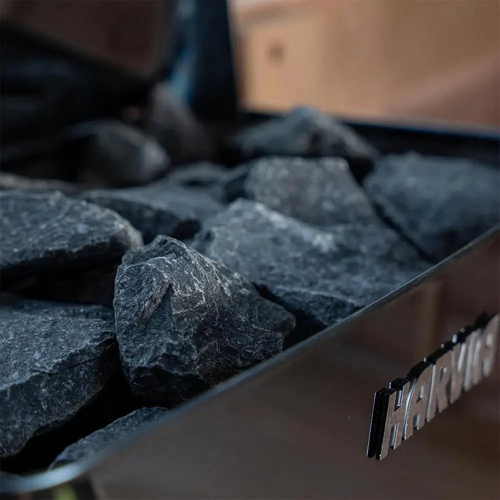 This product is sold without sauna stones, which are essential for proper operation and steam generation. For optimal performance and longevity, we recommend using 20kg of Harvia Vulcanite Sauna Stones. Specifically selected for electric sauna heaters, these high-density stones ensure even heat distribution and reliable thermal retention, enhancing your sauna experience from the very first session. Available separately here.