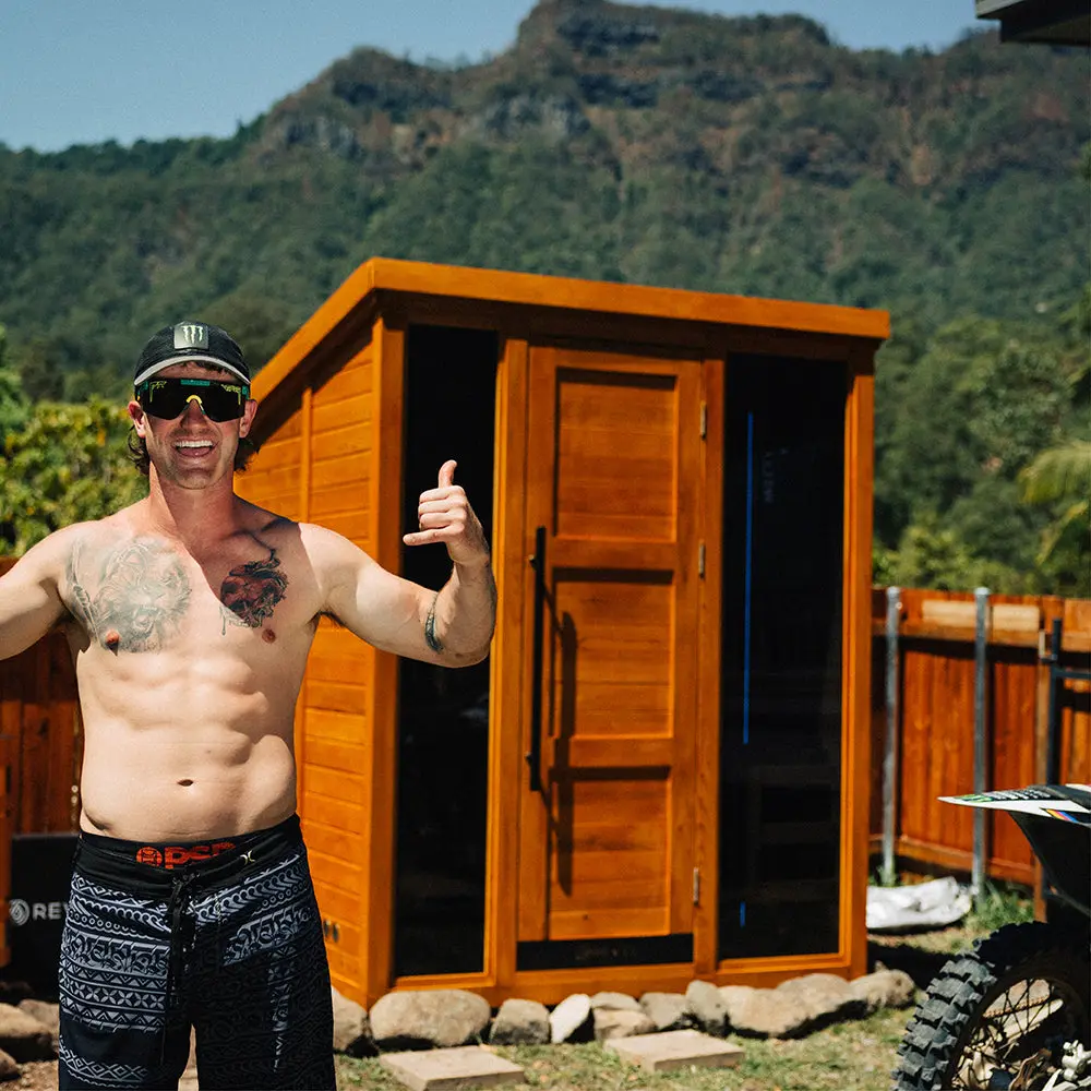 Bring powerful Finnish sauna therapy home with the Revel Solaris Traditional Cabin Sauna, designed for deep recovery, stress relief, and daily rejuvenation. Crafted from Japanese Cedar and fitted with a premium Harvia heater, the Solaris combines timeless heat with sleek, structured design. Its spacious interior and wide bench layout make it perfect for full body sweat sessions.